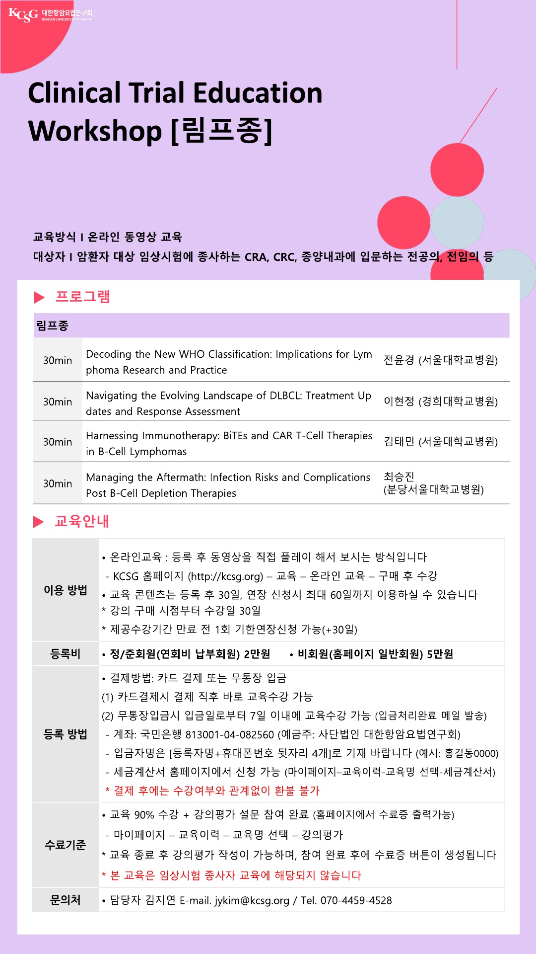 | 00:00 - 00:30 | 30 min | Harnessing Immunotherapy: BiTEs and CAR T-Cell Therapies in B-Cell Lymphomas | 김태민 (서울대학교병원) |