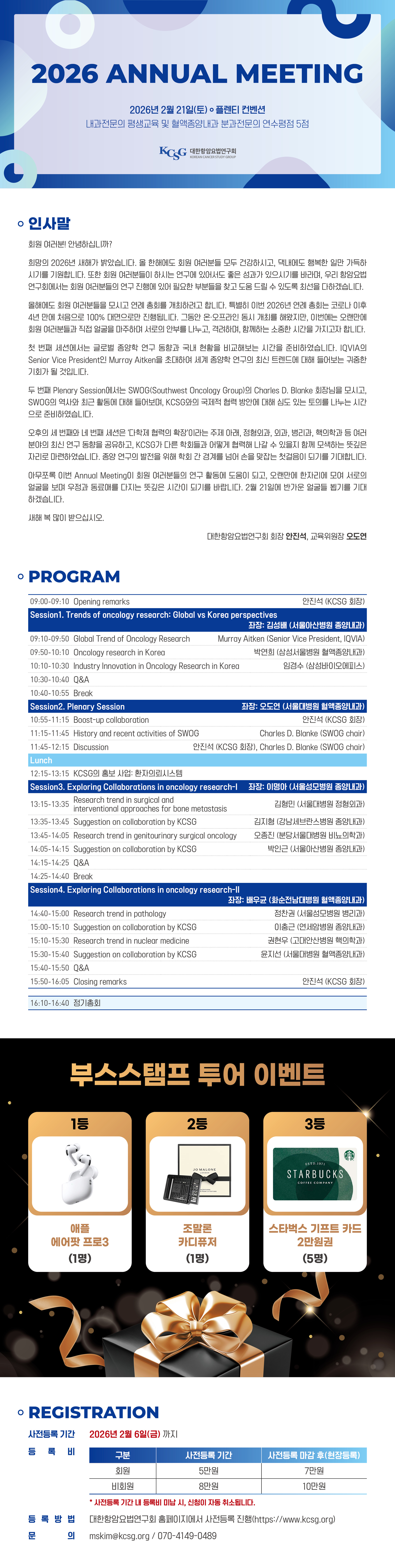 2026 KCSG Annual Meeting 은 100% 대면 행사로 개최합니다.